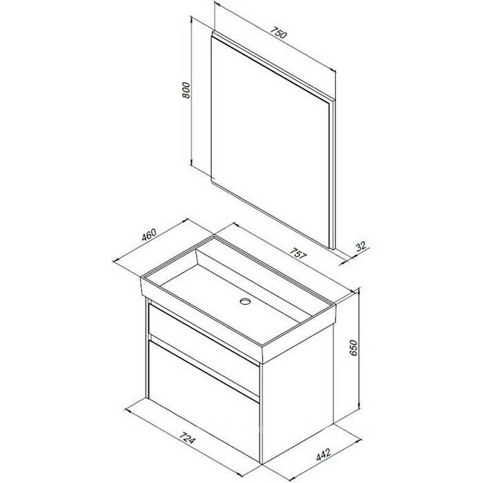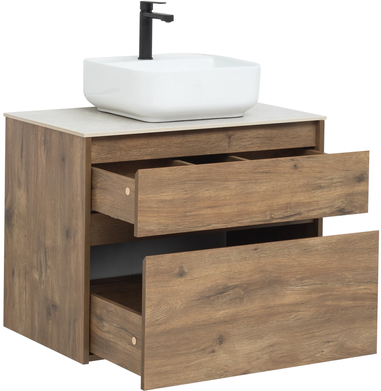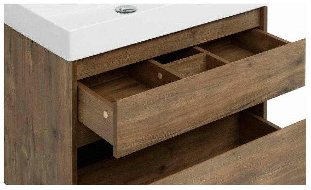 Тумба: Aquanet Nova Lite 75, цвет дуб рустикальный, 2 выдвижных ящика. Не забудьте заказать раковину и зеркало (смотрите дополнительную комплектацию и опции).