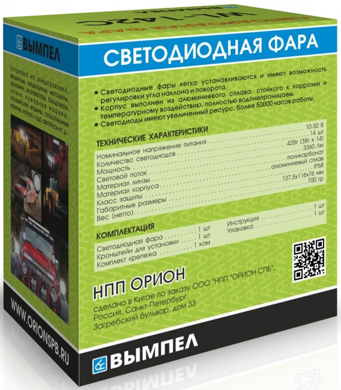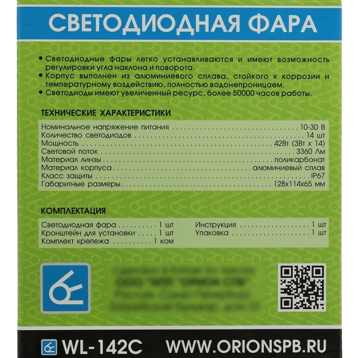 | Комплектация | фара (1 шт), кронштейн (1 шт), крепежный болт (1 комплект) |