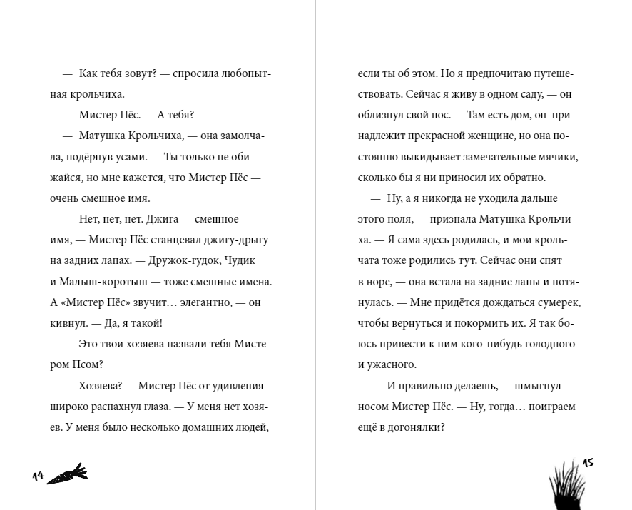 Мистер Пес живет на окраине города, он дружелюбный, добродушный и всегда готов прийти на помощь. Например, однажды, когда Мистер Пес играл в догонялки с Матушкой Крольчихой, та угодила в ловушку. И вот уже Мистер Пес в центре спасательной операции и неожиданного приключения по поиску клада! А еще он никак не ожидал, что ему предстоит стать няней для маленьких крольчат… Книга «Кроличий клад» очень добрая и веселая, в ней много приключений, забавных моментов, много говорится о дружбе и любви к животным. Основные темы, на которые авторы предлагают нам задуматься – животные, как домашние, так и те, что живут на природе, нуждаются в нашей помощи и заботливом отношении. История написана просто и отлично подходит как для чтения вслух, таки и для первого самостоятельного чтения.