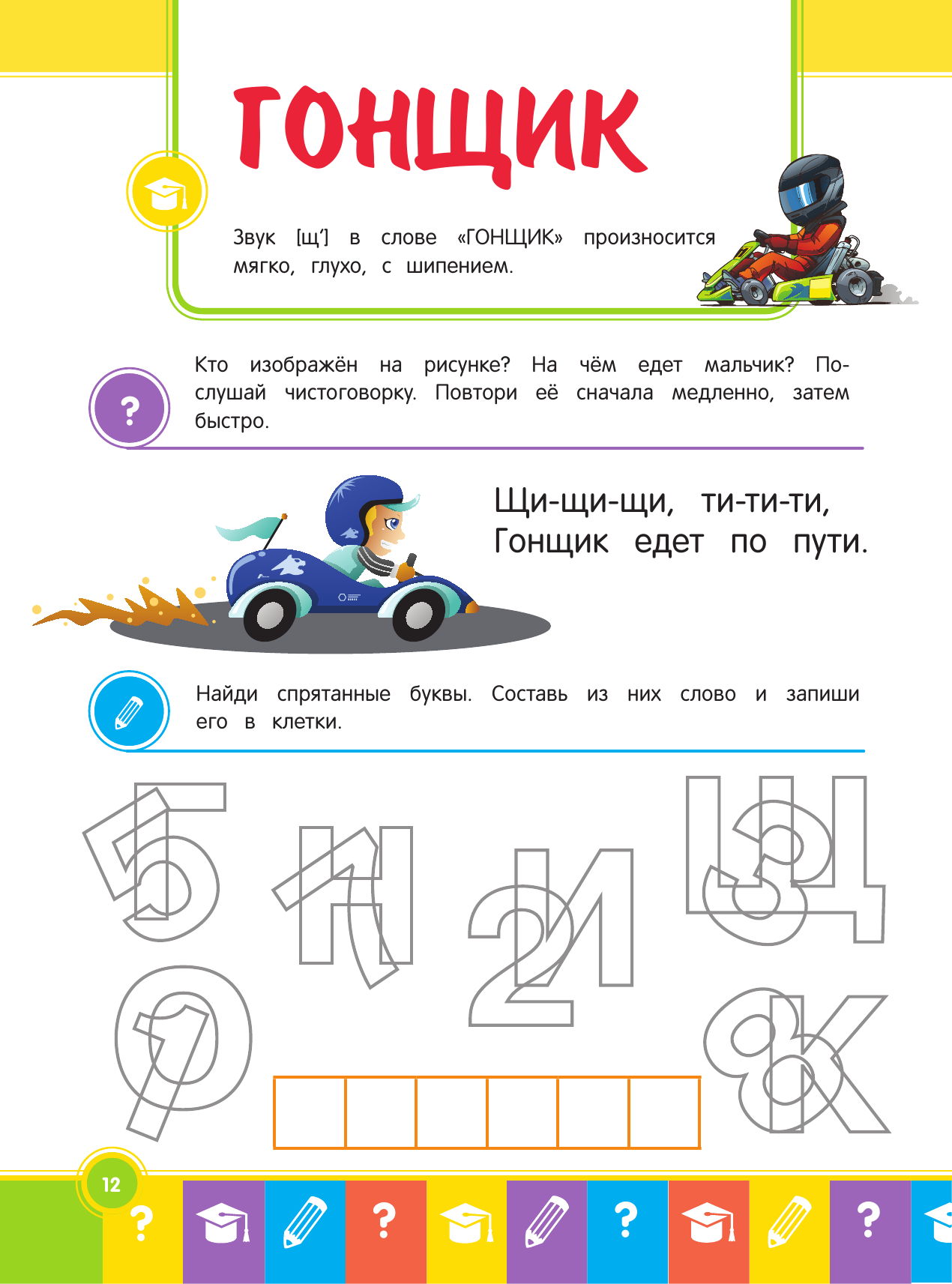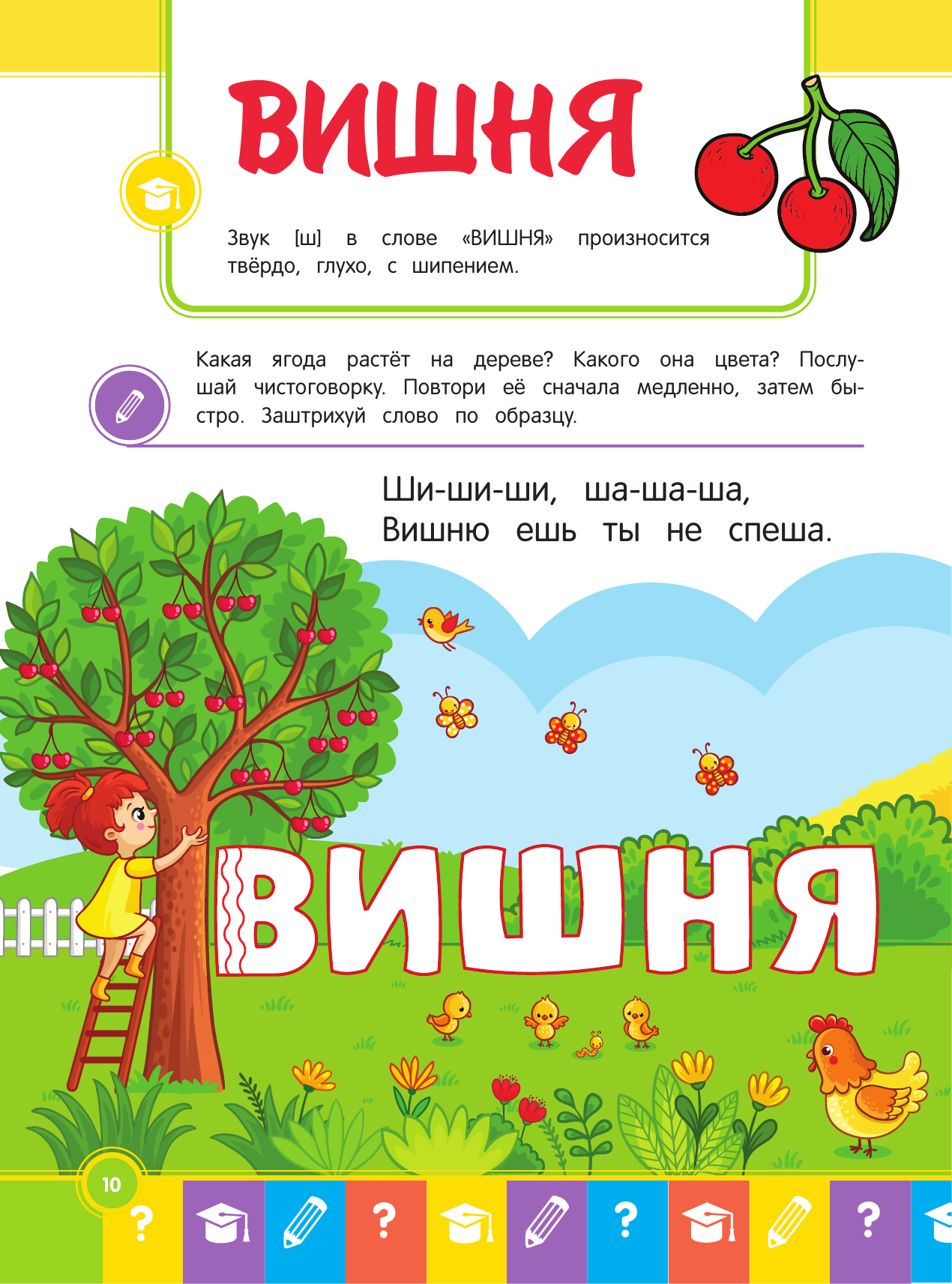 Как ребёнок произносит слова, так он будет их читать и писать, поэтому важно научить его правильно произносить все звуки в словах. Книга включает в себя комплекс заданий со словами, которые малыш учится правильно произносить, писать и читать. Слова подобраны профессиональными психологами и логопедами согласно возрастным нормам произношения звуков. Выполняя задания, ребёнок будет видеть, как пишется слово, обводить его по пунктиру и учиться правильно произносить. При этом одновременно работают зрительная, слуховая и моторная память. И когда ребёнок в будущем столкнётся с этим словом на письме или в тексте, он мысленно его произнесёт, визуально вспомнит и правильно напишет или прочтёт.