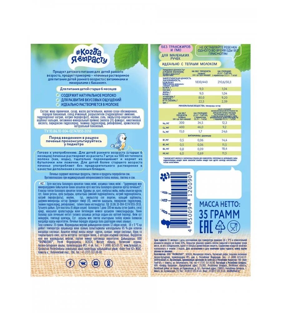 Сервис сравнения цен СкидкаГИД предлагает сравнить цены на товар «Печенье Когда Я вырасту Детское с Бананом 35г Фармалакт»