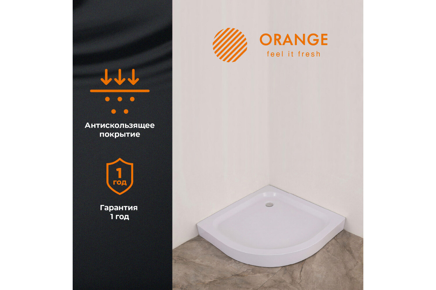 Поддон Orange E01-100TB/T Вы можете использовать отдельно, оградив пространство шторкой, или вместе с душевым ограждением E01-100TB/G. Модель имеет стандартную форму четверти круга с боковыми сторонами 98 сантиметров, высота поддона - 12,5 см, глубина поддона - 4,5 см. Надежность и устойчивость конструкции обеспечивает усиленный каркас и 6 ножек. Сам же корпус выполнен из акрила с антискользящим покрытием. Комплектация поддона включает также сифон.