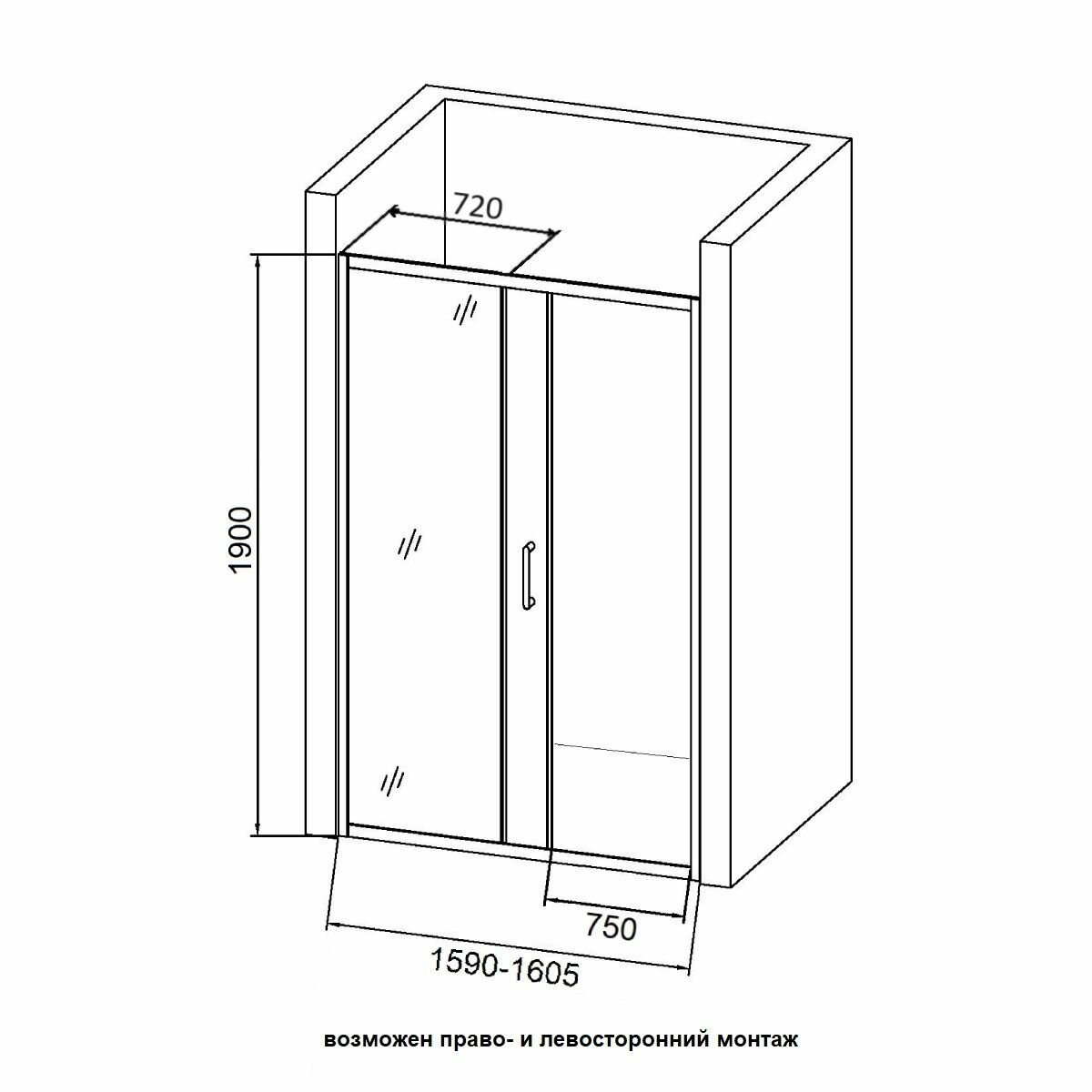 Душевая дверь в нишу Orange E02-160TCR 160 профиль Хром стекло прозрачное
