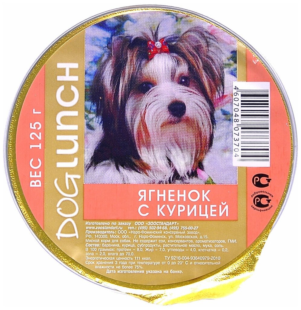 Влажный корм для собак Dog Lunch Крем-суфле Ягнёнок с курицей 0125 кг крем-суфле с ягненком и курицей, 125 г