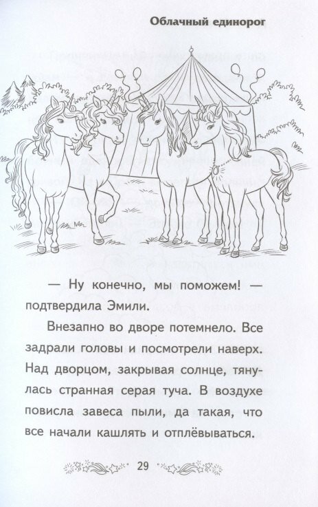 Книга отличная. Полиграфия на высоте. Переплет внушает доверие, что она выдержит не одно чтение, хотя лучше было бы прошить. Иллюстрации черно-белые, но их много. Возможно, кроме экономии красок был расчет на самостоятельное раскрашивание. Что ж, неплохая идея. Девочкам - поклонницам творчества Дейзи Медоуз понравится, 100%. главные герои - снова 2 девочки-подружки. На этот раз действие книги связано не с лесными животными, а со сказочными единорогами, в начала книги портреты всех единорогов с именами, очень увлекательно и вызывает желание купить еще книги из этой серии. Заказали на ДР, все счастливы.