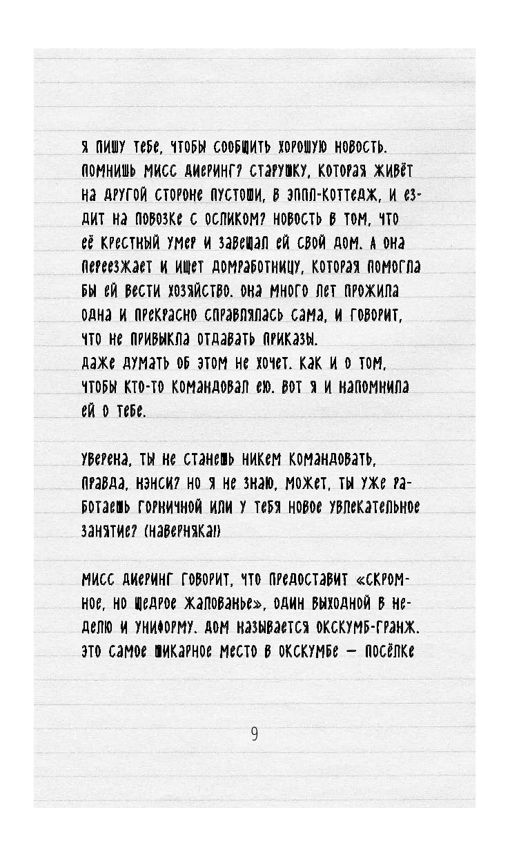 Горничная-детектив возвращается! Нэнси Паркер получила новую работу в богатом доме Окскумб-Гранж и она счастлива. У неё будет щедрое жалование, чудесная униформа и полноценные выходные, когда она сможет заниматься любимым делом - вести детективные расследования. Нэнси убеждена, что окружающие всегда что-то замышляют и… скрывают. На новом месте, почти каждый вечер она слышит сверхъестественные звуки, а её хозяйка получает странные письма (горничная вскрыла одно из них с помощью пара!) Нэнси немедленно рассказала о своих страхах и опасениях своей подруге Элле Оттер. Теперь та уверена, что это привидения. Но сама Нэнси точно знает - никакие это не привидения, это новая детективная загадка. Но Эллу разве убедишь? Она жаждет провести научный эксперимент…