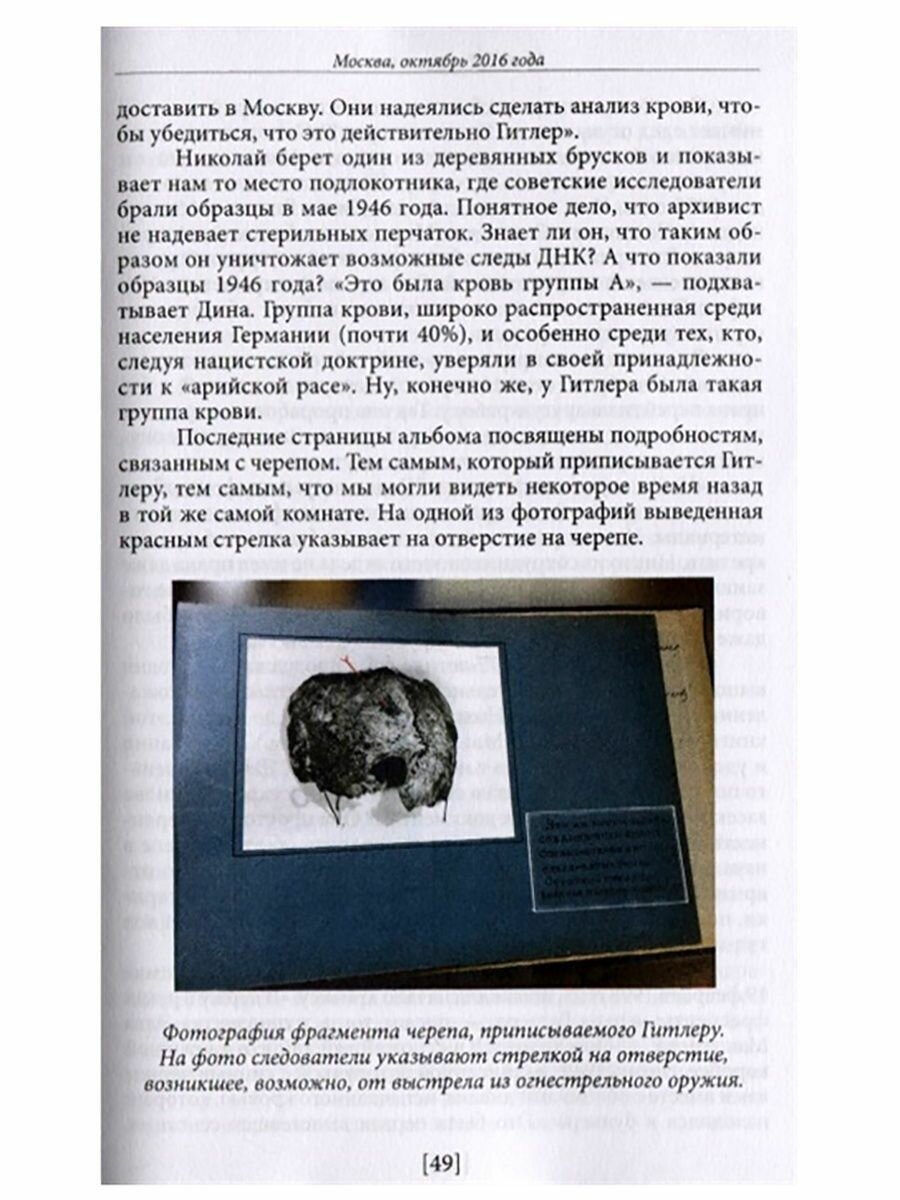 В 2016 году Центральный архив ФСБ, Государственный архив Российской Федерации, Российский государственный военный архив разрешили (!) российско-американской журналистке Л. Паршиной и французскому журналисту Ж.-К. Бризару ознакомиться с секретными материалами. Авторы, основываясь на документах и воспоминаниях свидетелей и проведя во главе с французским судмедэкспертом Филиппом Шарлье (исследовал останки Жанны Д'Арк, идентифицировал череп Генриха IV и т. п.) официальную экспертизу зубов Гитлера, сделали научное историческое открытие, которое зафиксировано и признано международным научным сообществом. О том, как, где и когда умер Гитлер, читайте в книге! Книга "Смерть Гитлера" издана уже в 37 странах мира. Сейчас, в год 75-летия Победы в Великой Отечественной войне, мы представляем ее на русском языке.