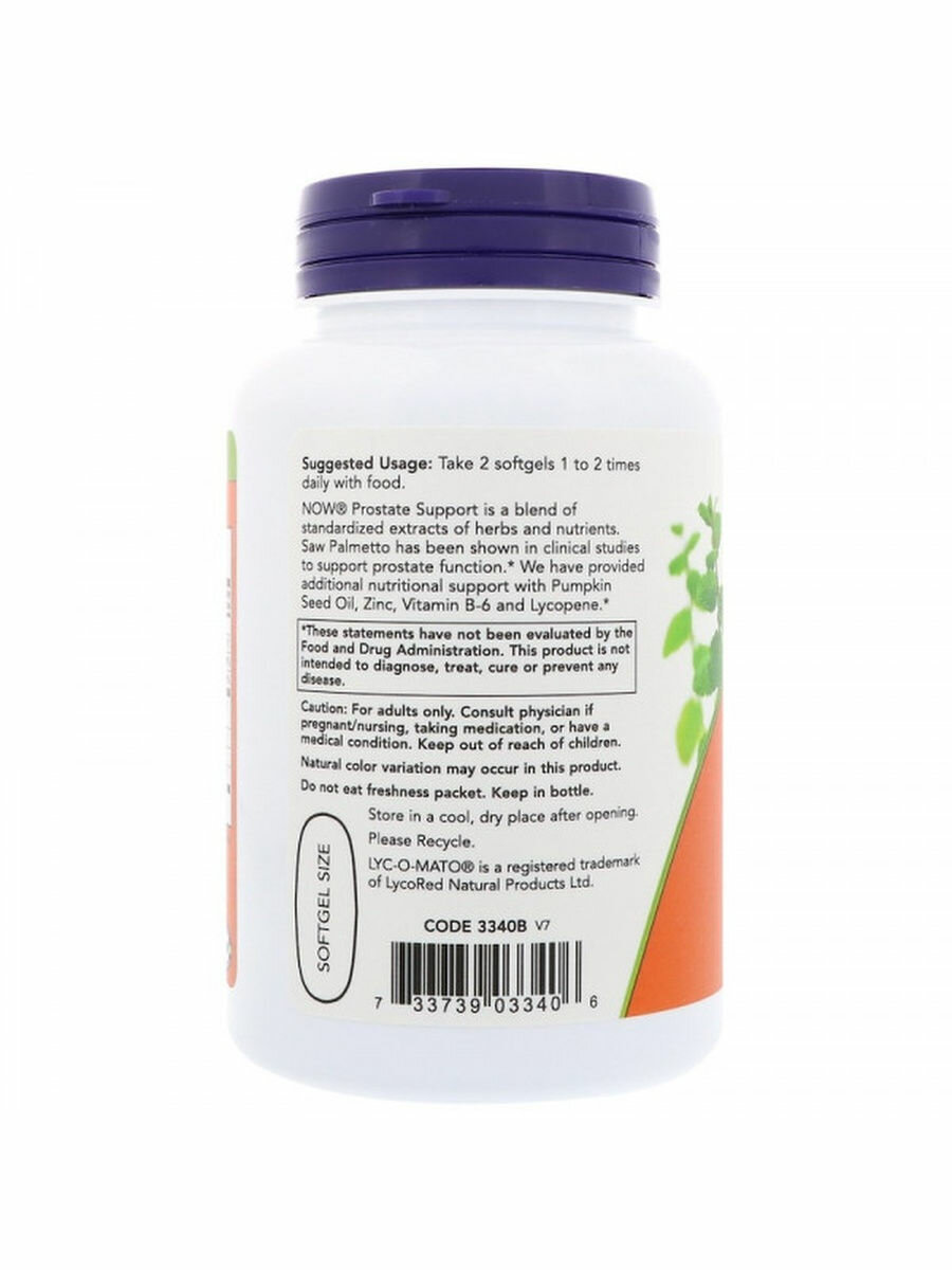 NOW Prostrate Support - это смесь стандартизированных экстрактов трав и нутриентов. Как показали клинические исследования, пальма сиреноа содействует нормальному функционированию простаты. Мы предоставили дополнительную питательную поддержку с помощью масла тыквенного семени, цинка, витамина B-6 и ликопена.