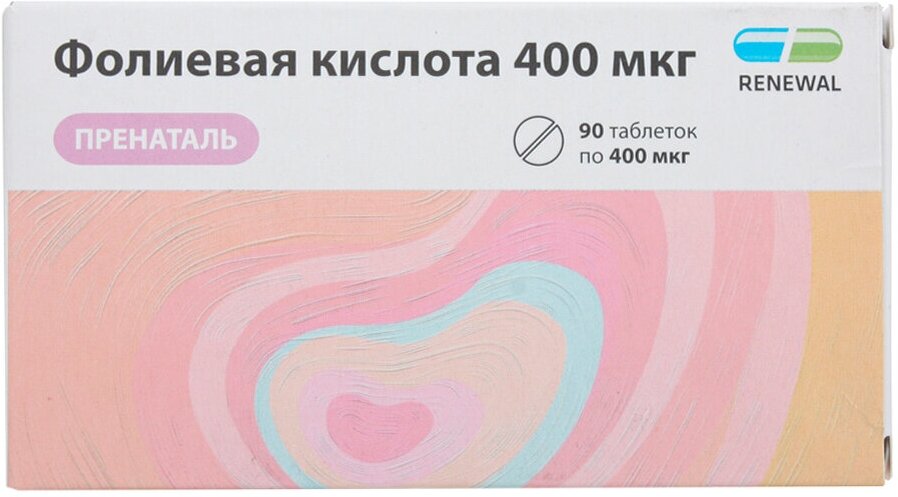 Фолиевая кислота renewal 400 мкг пренаталь таблетки 100мг 90шт ЗАО "ПФК Обновление" (1092589)