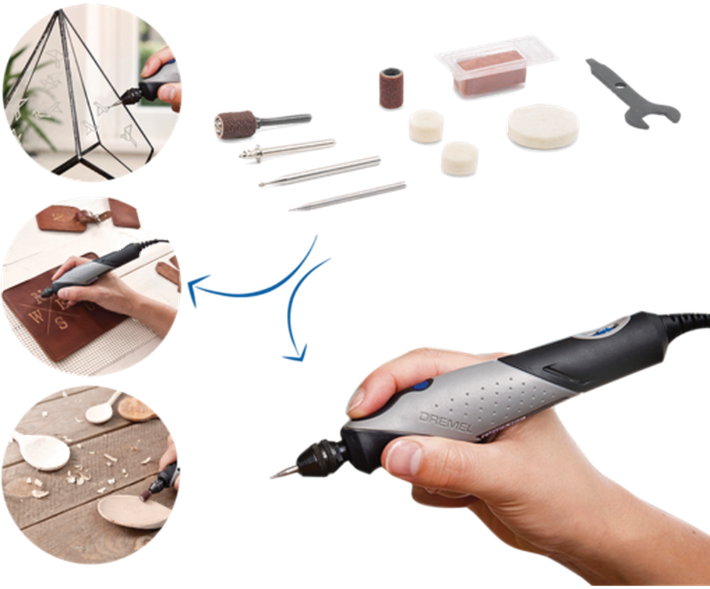 Универсальный Dremel Stylo+ – это идеальный инструмент для создания творческих работ и выполнения DIY-проектов. Тонкий и легкий корпус позволяет держать инструмент как обычную ручку. Благодаря удобству и простоте использования вы можете заниматься творческими DIY-проектами, которые требуют продолжительной работы и точности. Благодаря гибкому 2-метровому проводу вы достигнете отличных результатов при выполнении гравировки, резки, чистки и полировки на различных материалах.