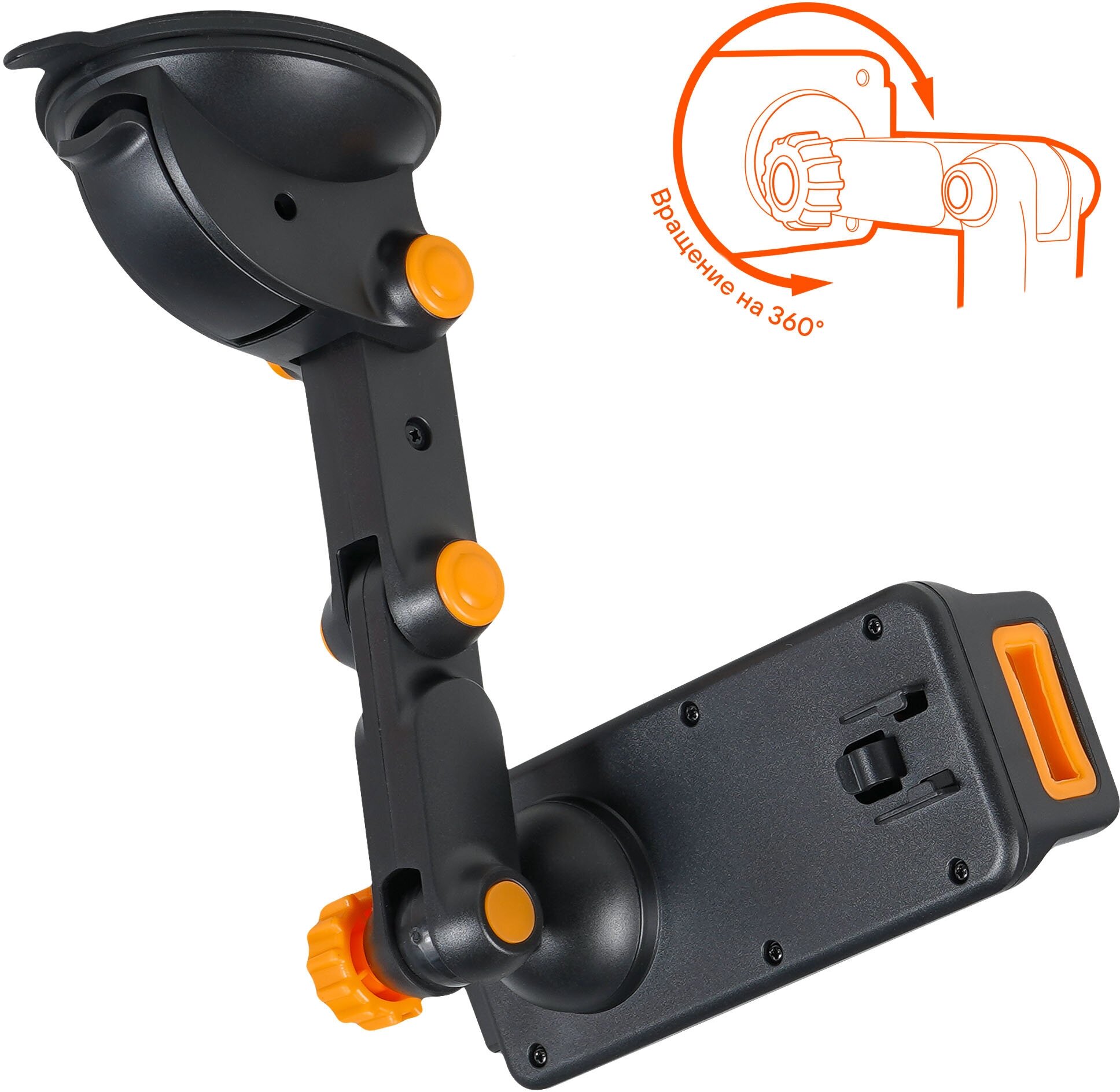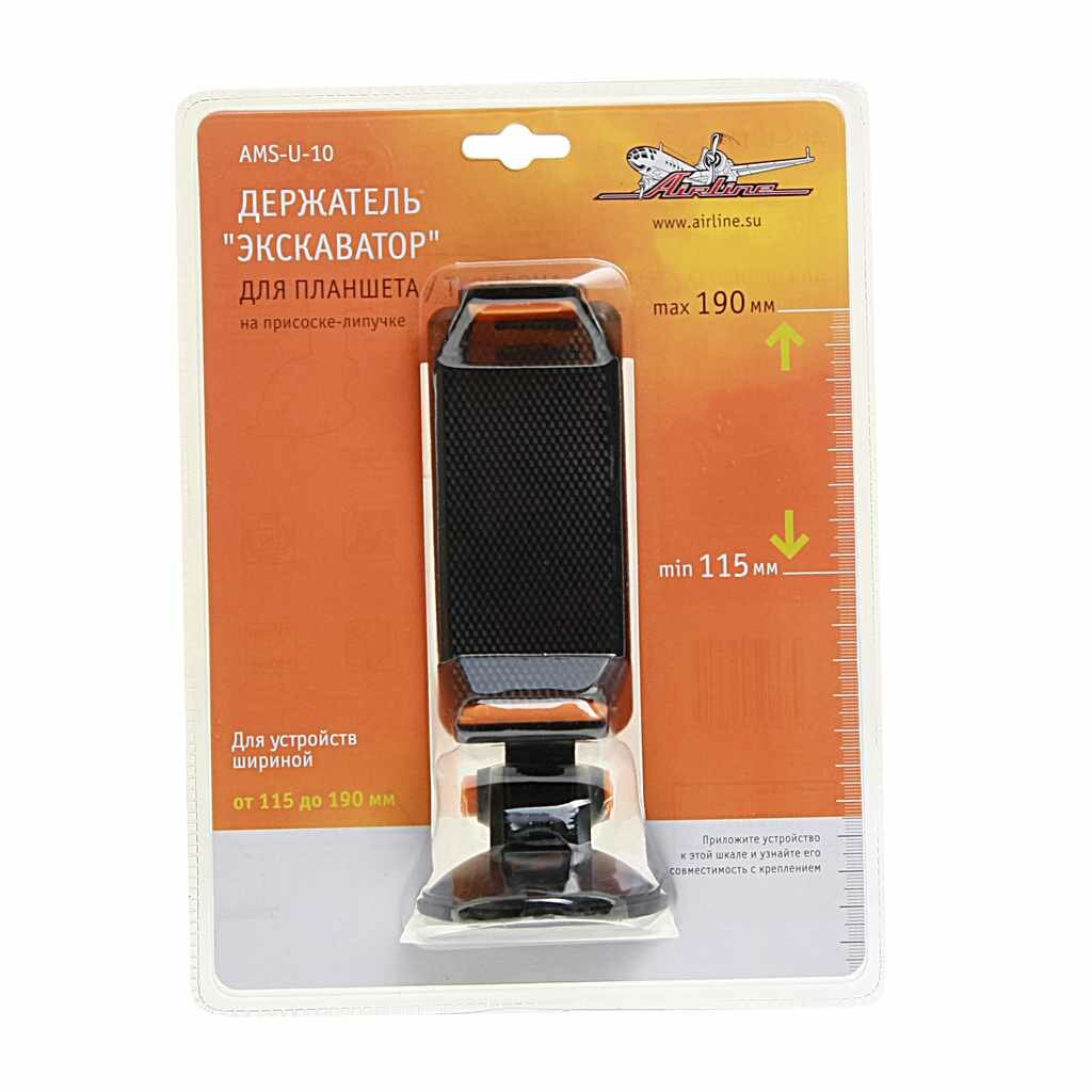 Держатель Airline крепится на поверхность стекла или приборной панели при помощи присоски-липучки. Имеет несколько регулировок наклона и способен удерживать не только смартфон но и планшет размером от 115 до 190мм. Резиновые накладки на прижимах надёжно удерживают устройство от выскальзывания.
