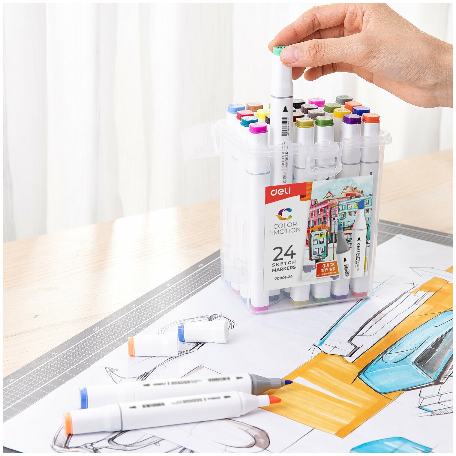 Набор маркеров для скетчинга Deli , с двойным пишущим наконечником 1-7мм, 24цв., пластиковая коробка