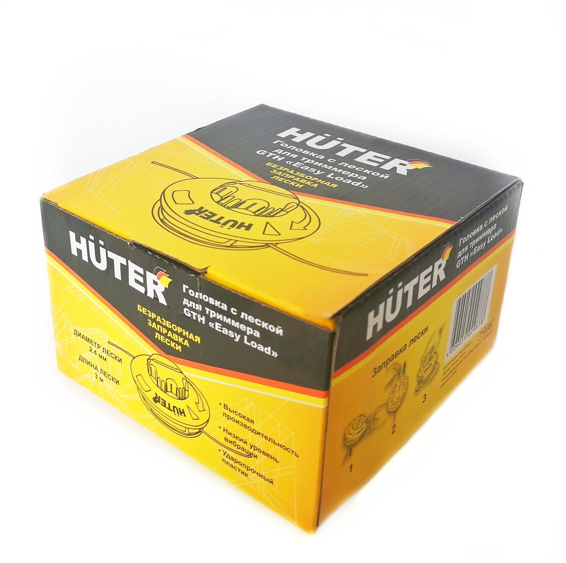 Катушка Huter "Easy Load" проста в использовании - она легко устанавливается и снимается, а также не требует специальных навыков для замены лески. Безразборная заправка осуществляется буквально в три движения за 10 секунд: