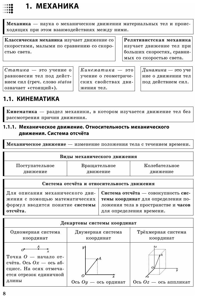 Пособие содержит теоретические сведения в схемах и таблицах по всем темам, проверяемым на ЕГЭ по физике. После каждого раздела приводятся тренировочные задания разных типов с ответами. Наглядное и доступное изложение материала позволит быстро найти нужную информацию, устранить пробелы в знаниях и в кратчайшие сроки повторить большой объем информации. Издание окажет помощь старшеклассникам при подготовке к ЕГЭ по физике, урокам и различным формам текущего и промежуточного контроля.