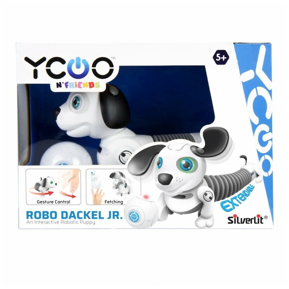 С этим забавным щенком не надо гулять 3 раза в день, поэтому он является идеальным питомцем. А еще робот с удлиняемым телом и смешной мордашкой очень любит играть с мячиком и реагирует на поглаживания от своего хозяина.