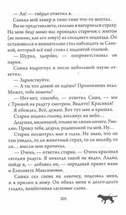 После просмотра спектакля по этому произведению захотелось прочитать книгу. Очень понравилась. Интересно написано от лица собаки об отношениях собачьих и человеческих. О многих повседневностях не задумывалась раньше. Если учесть возраст автора, в котором написана эта книга, то он молодец! Рекомендую почитать это произведение. На мой взгляд эта книга подойдет и взрослым и детям.