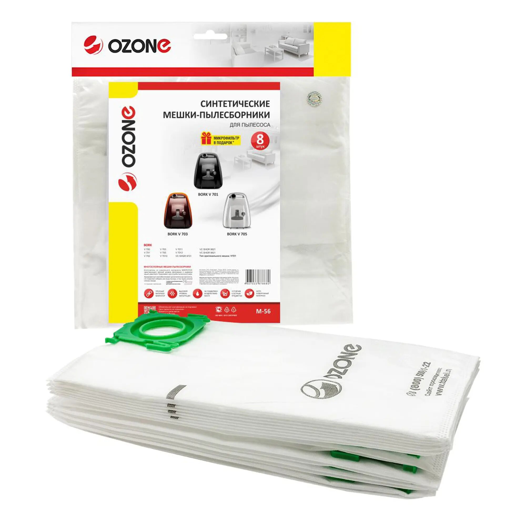 Соответствует типу оригинального мешка Bork - V7D1Мешок-пылесборник совместим со следующими моделями пылесосов Bork: V7013, V7012, V7011, V7010, V705, V703, V702, V701, V700, VC SHGR 9921, VC SHGR 9821, VC SHGR 9721Многослойные мешки пылесборники OZONE изготовлены из уникального антиаллергенного материала микропор и отличаются высоким уровнем фильтрации. Конструкция каждого мешка позволяет сохранять максимальную мощность всасывания даже при стопроцентной наполненности. Тройной эффект микропоры существенно повышает качество уборки. Благодаря ему пылесборники задерживают мельчайшие частицы пыли до 5 микрон. Увеличенная прочность позволяет справляться со всеми видами мусора, в том числе с осколками стекла и гвоздями, а также гарантирует устойчивость к воздействию жидкостей. Использование мешков OZONE помогает продлевать срок службы пылесоса за счёт снижения нагрузки на двигатель, при этом постоянно сохраняется высокая мощность всасывания.