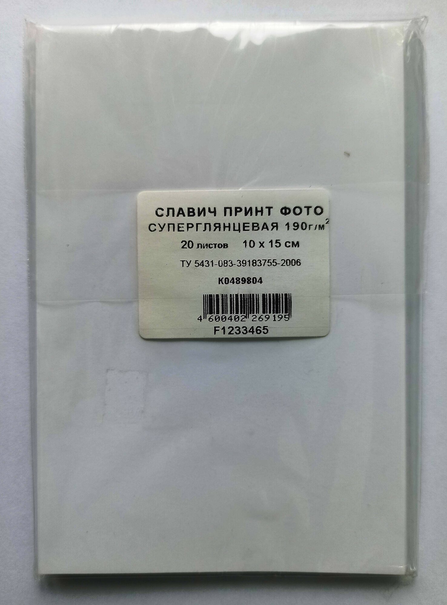 Универсальная высококачественная фотобумага Славич A6 190г/кв.м 20л имеет глянцевую поверхность. Микропористое покрытие на полиэтиленированной фотоподложке обеспечивает высокое качество, яркость и сочность изображений. Отпечатки мгновенно высыхают после записи, водостойки.