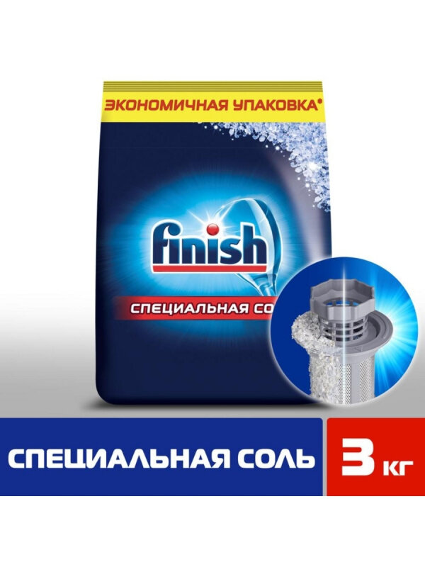 Описание товара:Специальная соль для посудомоечных машин Finish. Отложения извести могут отразиться на эффективности работы вашей посудомоечной машины. Соль Finish обладает 5-ю мощными функциями и состоит из очищенной соли, специально гранулированной для использования в посудомоечной машине. Соль способствует правильной работе ионообменника, тем самым помогая смягчать воду и защищая посудомоечную машину от образования известкового налета, накипи, а также борется с появлением пятен и подтеков на посуде и стекле.Состав товара:Хлорид натрия.Меры предосторожности:Хранить в местах, недоступных для детей. Не глотать. При попадании в полость рта обратитесь к врачу.Способ применения:Важно: Соль Finish разработана специально для посудомоечной машины. Другие соли, не предназначенные для посудомоечных машин, могут содержать примеси, способные повредить посудомоечную машину. - Наполните солью предназначенный для нее отсек посудомоечной машины (согласно инструкции по эксплуатации). Для наилучших результатов регулярно проверяйте уровень соли в отсеке, поддерживая его заполненным. - Особенно рекомендуется жителям регионов с жесткой и очень жесткой водой. - Для наилучших результатов используйте специальную соль Finish вместе с моющими средствами Finish.