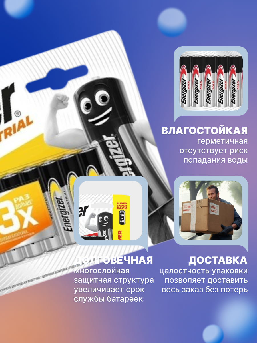 На сегодняшний день товар «Батарея Energizer Industrial AAA-LR03 10шт.» можно купить с кешбеком в 1 магазине: Яндекс.Маркет