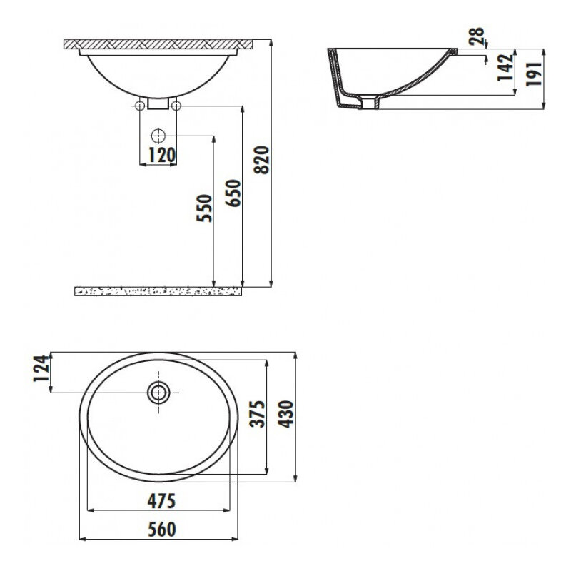 Раковина под столешницу Creavit 56 TP214-00CB00E-0000.