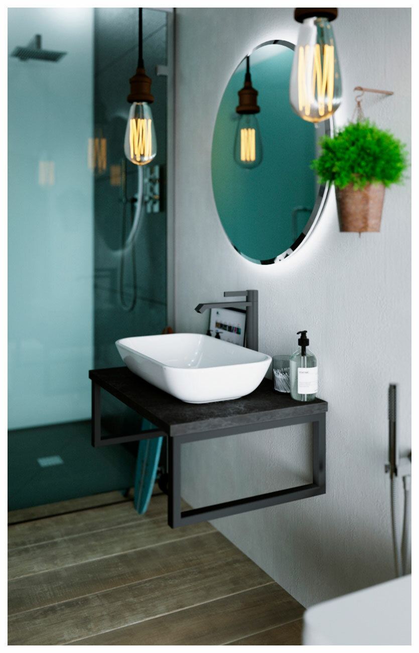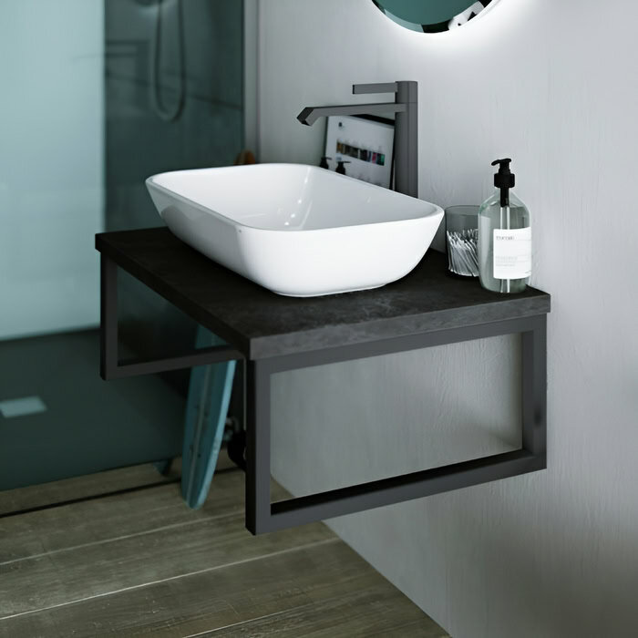 Столешница Grunge Loft 80 Бетон темно-серый. Цвет мебели: Бетон темно-серый. Кронштейны и крепления к стене идут в комплекте. Столешница в современном стиле Loft, выполненная в естественном, близком к натуральному, сдержанном цвете. Кроме внешней эстетики, отличается высокой функциональностью, позволяющем максимально разгрузить пространство и сделать быт более комфортным. Тактильные матовые металлические кронштейны служат одновременно как крепления и функциональные рейлинги. Возможно установить раковины Ringo Cut 53/Infinity 60 от Sanita Luxe. Раковины продаються отдельно.