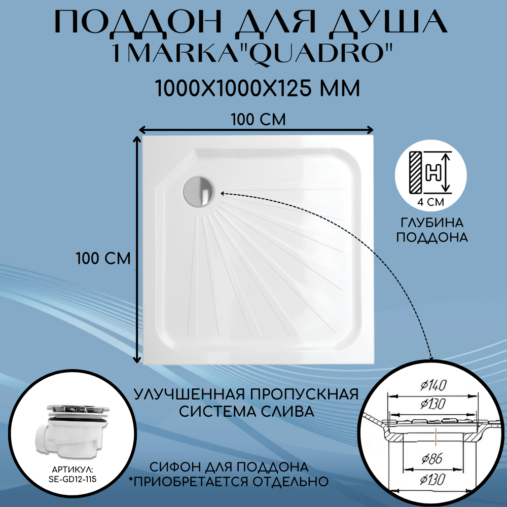 Сервис сравнения цен СкидкаГИД предлагает сравнить цены на товар «Акриловый поддон для душа 1MarKa Quadro 90x90 с антискользящим покрытием»