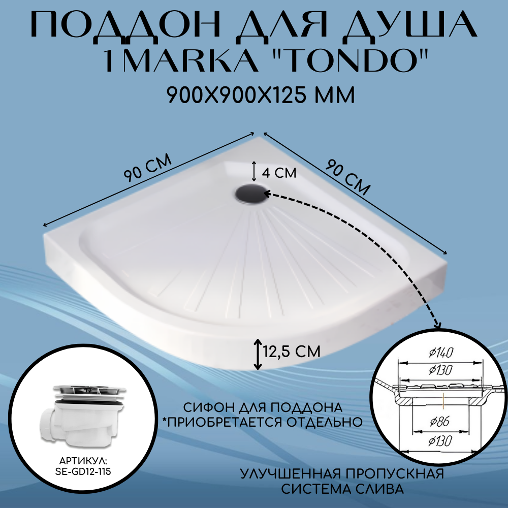 Акриловый поддон для душа 1MarKa Tondo 90x90 с антискользящим покрытием