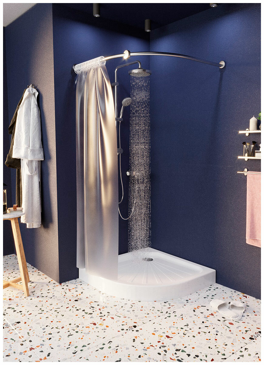 Поддон Tondo - экономное решение для душа. Поддон устанавливается на регулируемые по высоте ножки, а также имеет крепления к стене, благодаря чему надежно устанавливается на любую поверхность, и его не опрокинуть даже самому фактурному человеку.