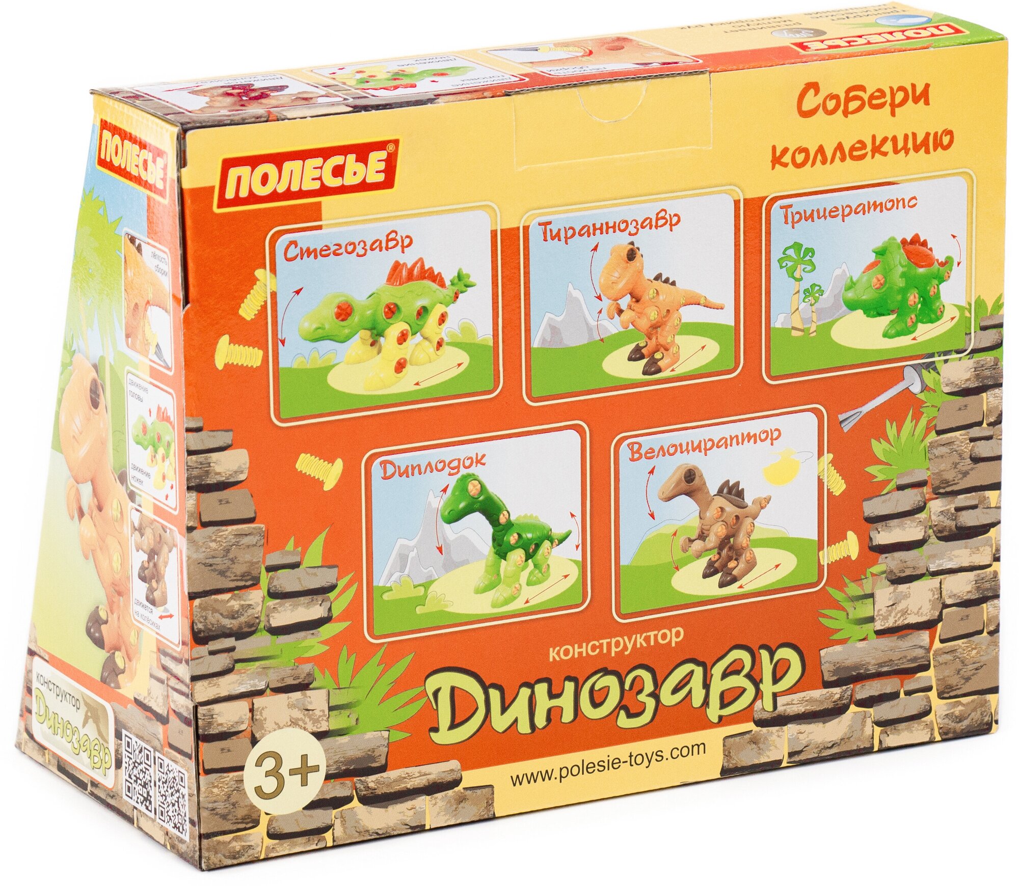 Фабрика «Полесье» предлагает детям стать маленькими палеонтологами и представляет серию конструкторов в виде динозавров. Мальчики и девочки познакомятся с "Тираннозавром", "Стегозавром", "Трицератопсом", "Диплодоком", "Велоцираптором". Особенности: * Игрушка выполнена в ярких цветах, из качественного материала, имеет округлую форму. * Изготовлено из высококачественного пластика без аллергенов, токсинов и фенолов. * Все элементы представлены в виде конструктора, который соединяется с помощью пластмассовых шурупов. Ребенок может многократно разбирать игрушку и собирать её снова. Винтики вкручиваются пластмассовой отверткой (в комплекте). * Игра с таким конструктором знакомит ребёнка с древним миром животных. А также развивает фантазию, учит моделированию и конструированию. Характеристики: - Размер упаковки: 25 х 12,5 х 20 см. - Размер динозавра: 22 х 8 х 19 см. - Количество деталей: 40. - Производитель: Полесье (Беларусь).