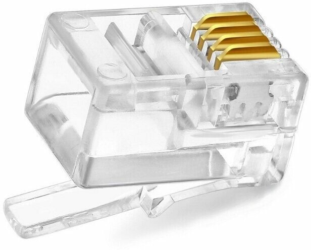 Patron RJ-9 4P4C - телефонная вилка, выполненная из качественного прозрачного пластика и медных позолоченных контактов, для соединения с помощью плоского многожильного кабеля телефонных устройств с сетью. Прочные материалы гарантируют длительную работу и связь высокого качества.
