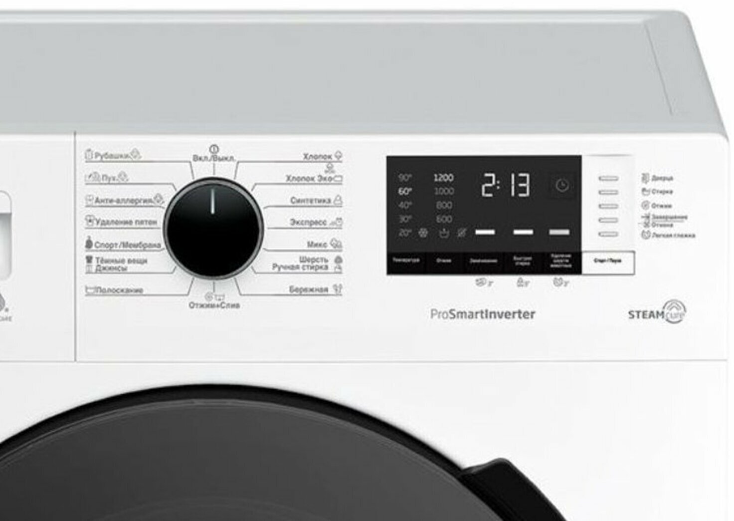 Белая стиральная машина с загрузкой барабана 7 кг и 15 программами для разных типов ткани. Дополнительные режимы стирки позволяют добавлять замачивание и полоскание и легко удалять шерсть животных с вашей одежды. Стиральная машина оснащена инверторным мотором ProSmart, который работает тихо и экономично потребляет электричество, технологией обработки паром SteamCure, электронным контролем дисбаланса и контролем пенообразования.