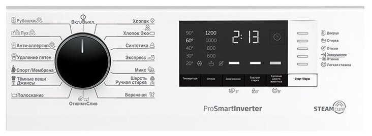 | Дополнительно * | Белая стиральная машина с загрузкой барабана 7 кг и 15 программами для разных типов ткани. Дополнительные режимы стирки позволяют добавлять замачивание и полоскание и легко удалять шерсть животных с вашей одежды. Стиральная машина оснащена инверторным мотором ProSmart, который работает тихо и экономично потребляет электричество, технологией обработки паром SteamCure, электронным контролем дисбаланса и контролем пенообразования. |