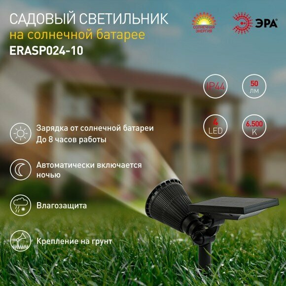 Эра ERASP024-10 ламп.:4шт светодиод.лампа солнеч.бат. черный