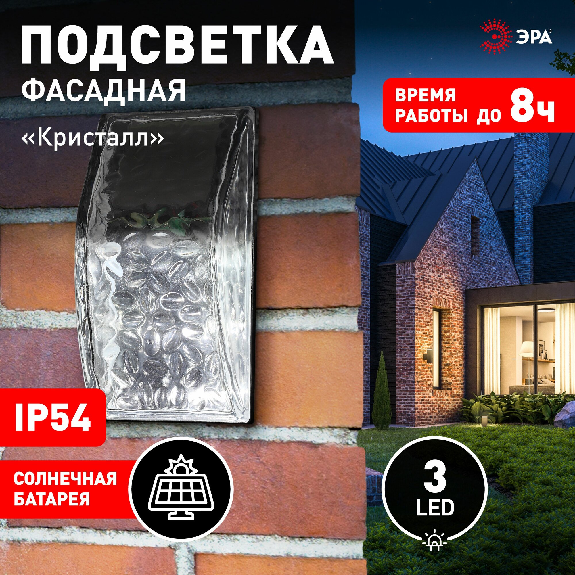 Светильник уличный ЭРА ERAFS024-39 на солнечной батарее Кристалл 3 LED - это современное и функциональное решение для освещения фасадов, террас, ступенек, беседок, гаражей и других объектов.Светильник оснащен тремя светодиодами, обеспечивающими яркий и равномерный свет с белым холодным оттенком. Световой поток составляет 7 лм, что гарантирует хорошую видимость в темное время суток.Арматура светильника выполнена из прочного пластика, а плафон - из прозрачного пластика. Это придает светильнику современный и стильный вид.Светильник работает на солнечной батарее, что позволяет экономить на электричестве и не зависеть от наличия или отсутствия сети.Светильник имеет степень пылевлагозащиты IP44, что делает его устойчивым к воздействию пыли и брызг воды.Светильник легко устанавливается на стену и имеет настенный тип установки.Светильник уличный ЭРА ERAFS024-39 на солнечной батарее Кристалл 3 LED - это надежное и стильное решение для уличного освещения, которое обеспечит комфорт и безопасность в вашем дворе.