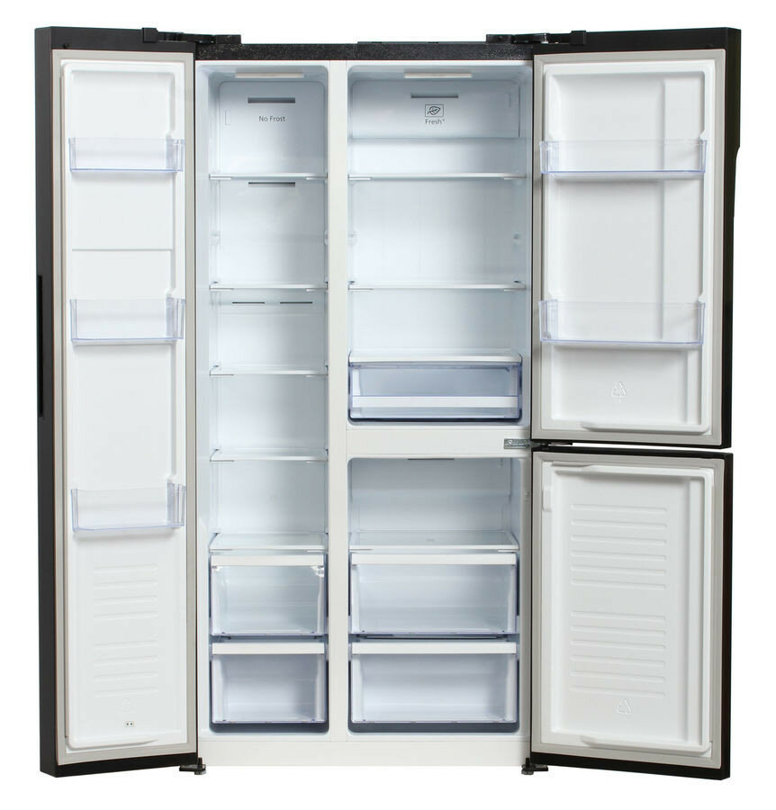 Строгий дизайн и продуманный конструктив воплощен в 3-х дверном инверторном холодильнике HYUNDAI CS5073FV (тип Side by Side).Данная модель холодильника оптимально подойдет для большой семьи, загородного дома или офиса.В отличие от большинства обычных моделей в холодильнике CS5073FV предусмотрено 3 отделения для хранения продуктов и напитков:Холодильное отделение обеспечивает сохранность продуктов при температуре от +2 до +8?С.Морозильное отделение обеспечивает длительное хранение замороженных продуктов при температуре от -15 до -23 °С.Универсальное отделение в зависимости от возникшей необходимости может использоваться и как отделение свежести для овощей и фруктов, и как зона с нулевой температурой для хранения мяса и рыбы, и как отделение для легкой заморозки.Инверторный компрессор отличается высокой надежностью, экономичностью и низким уровнем шума.Полки холодильника выполнены из закаленного стекла - их можно устанавливать на разной высоте, выдвижные ящики обеспечивают быстрый доступ к хранящимся продуктам. В дверцах холодильника установлены дополнительные вместительные полки для хранения напитков, детского питания и продуктов в компактных упаковках. При открытии холодильника включается светодиодное освещение – Вы сможете рассмотреть продукты на любой полке.Управление режимами и настройками всех отделений холодильника HYUNDAI CS5073FV сенсорное – легким касанием Вы можете менять желаемую температуру или включить режим «суперохлаждение» или «суперзамораживание». Вся информация о режимах работы и установленной температуре отображается на внешнем дисплее.Если дверцы холодильника полностью не закрыты - звуковой сигнал проинформирует об этом.Благодаря технологии Total No Frost наледь и иней не образуется на стенках в холодильной и морозильной камере – размораживание происходит автоматически.Благодаря регулируемым по высоте ножкам холодильник HYUNDAI CS5073FV может устанавливаться даже на неровной поверхности.Благородный черный цвет холодильника придаст неповторимый дизайн Вашей кухне.
