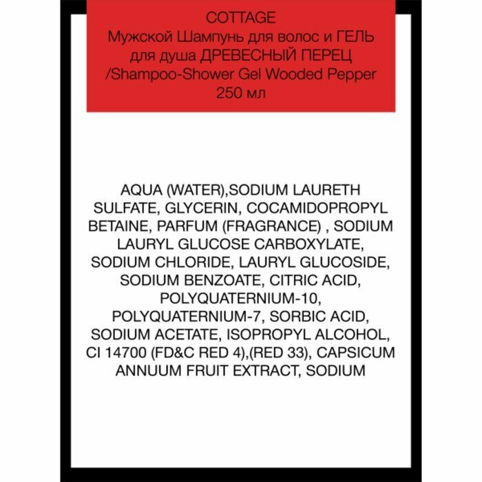 Шампунь Cottage (Коттедж) мужской для волос и гель для душа древесный перец wooded pepper 250мл GROUPE PANTHER S.A. (1122909)