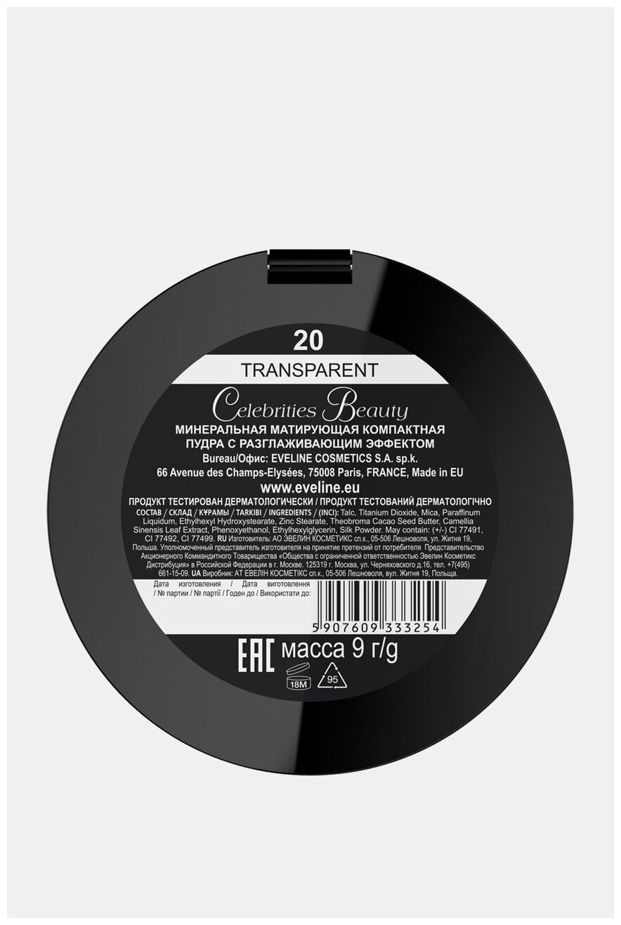 Пудра EVELINE (Эвелин) минеральная матирующая с разглаживающий эффектом CELEBRITIES BEAUTY тон 22 (1122727)