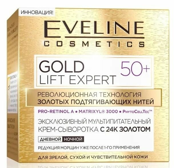 Крем-сыворотка Eveline (Эвелин) эксклюзивный мультипитательный с 24к золотом 50+ серии gold lift expert 50мл (1122727)