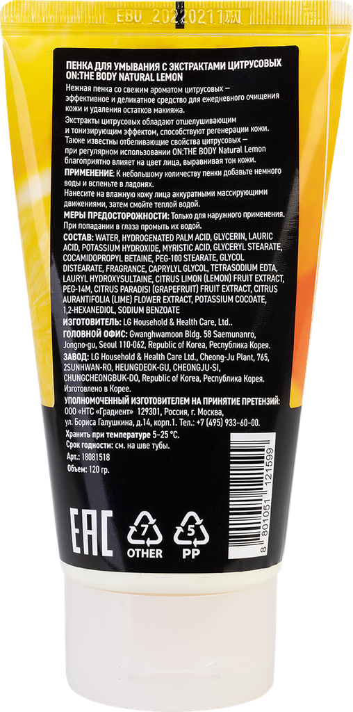 На сегодняшний день товар «Пенка Otb (О ти би) для умывания с экстрактом цитрусовых natural lemon LG Household & Health Care (1092559)» можно купить с кешбеком в 1 магазине: Яндекс.Маркет