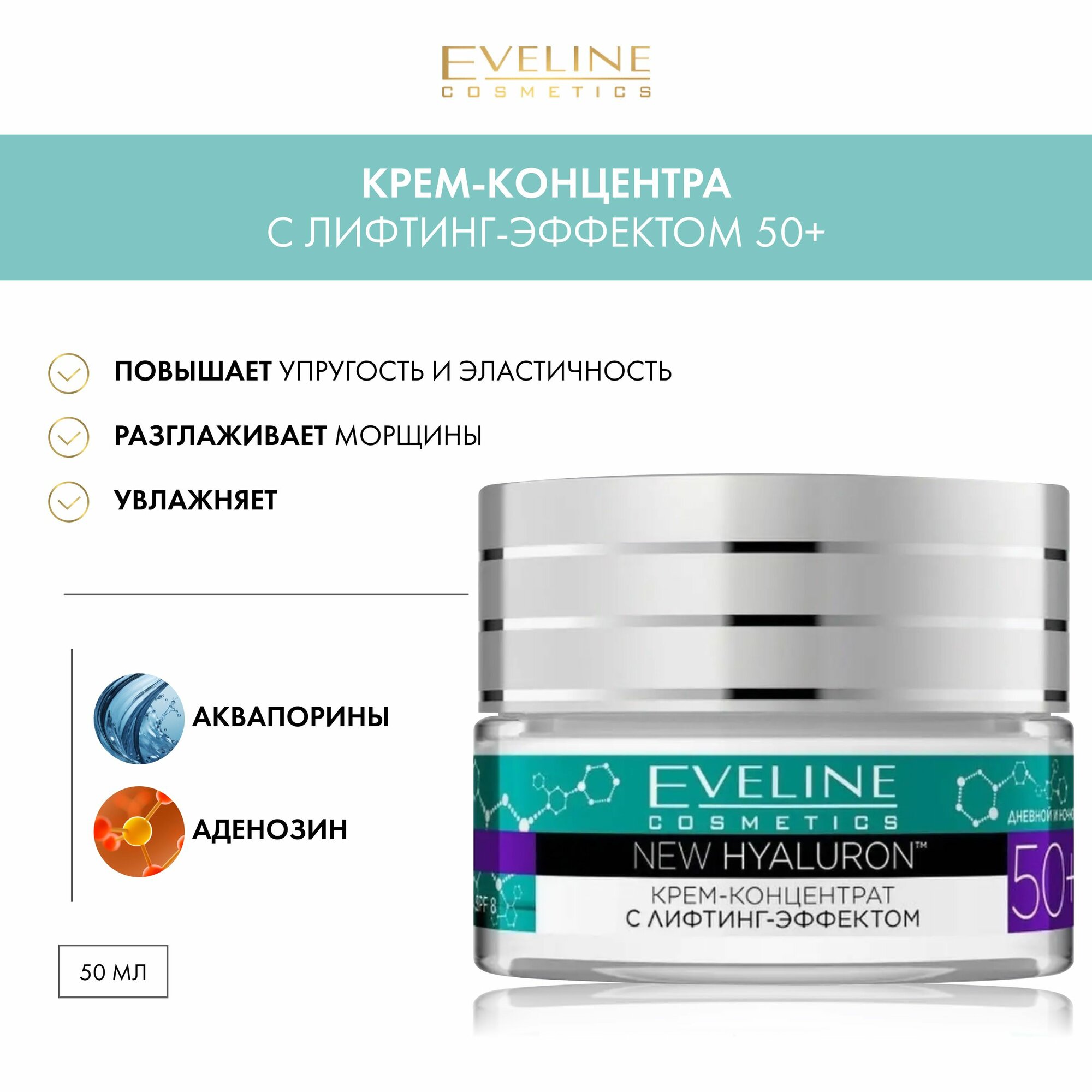 Крем-концентрат Eveline (Эвелин) с лифтинг-эффектом 50+ серии new hyaluron 50мл (1122727)