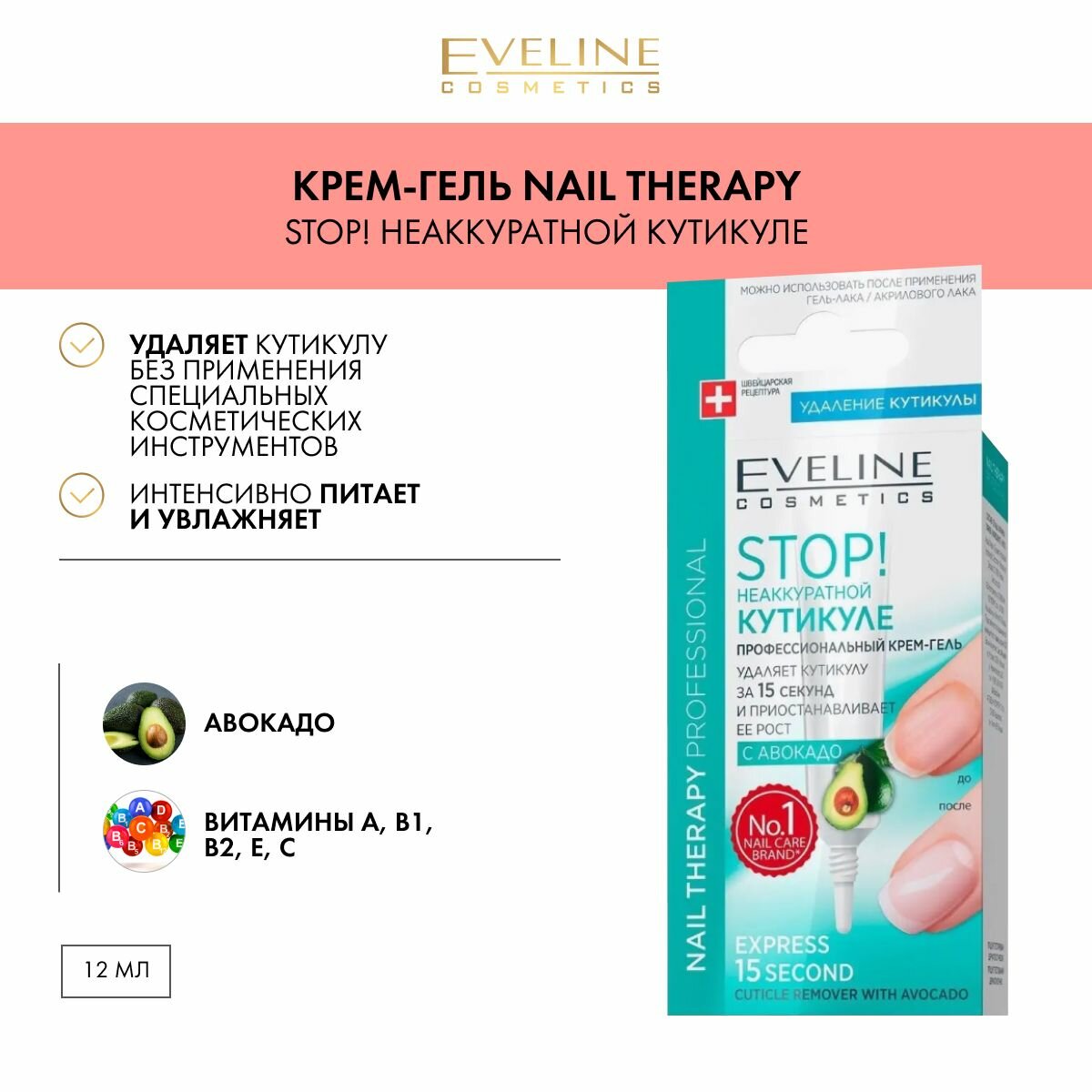 Крем-гель Eveline (Эвелин) stop! неаккуратной кутикуле профессиональный с авокадо серии nail therapy professional 12мл (1122727)