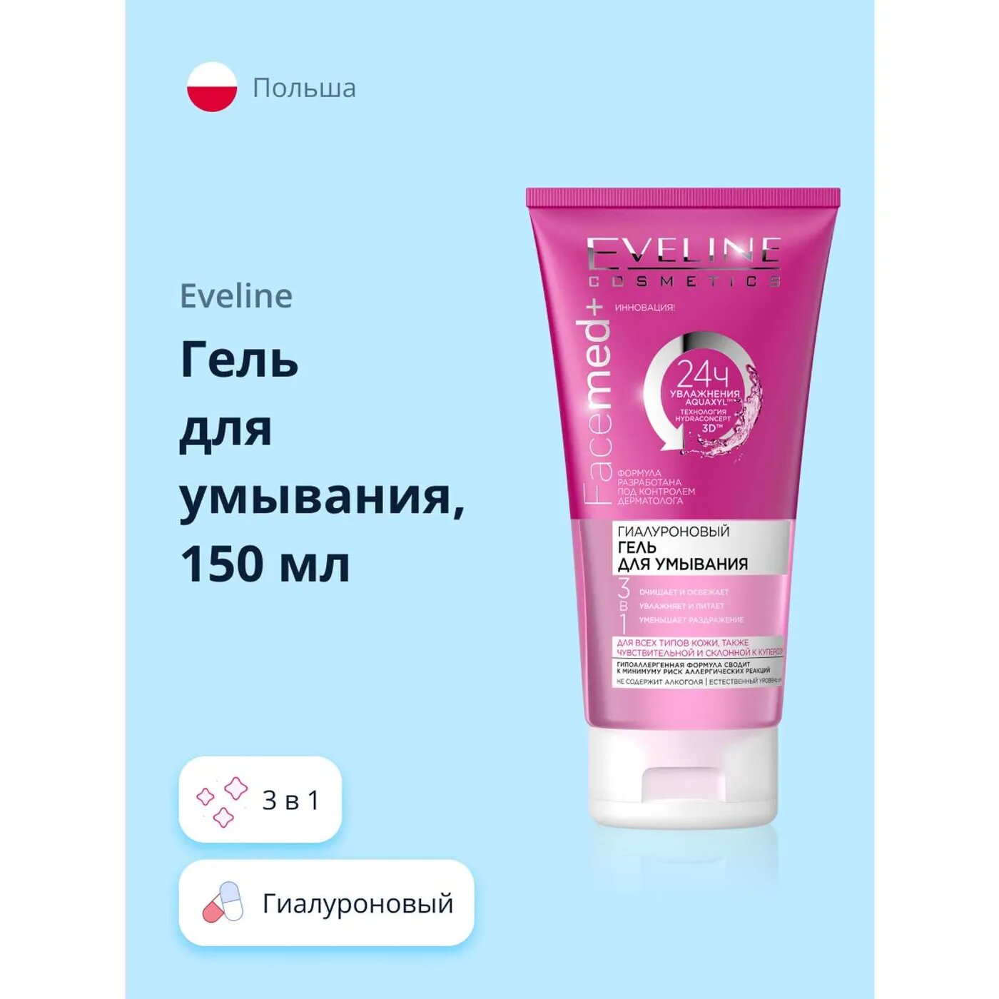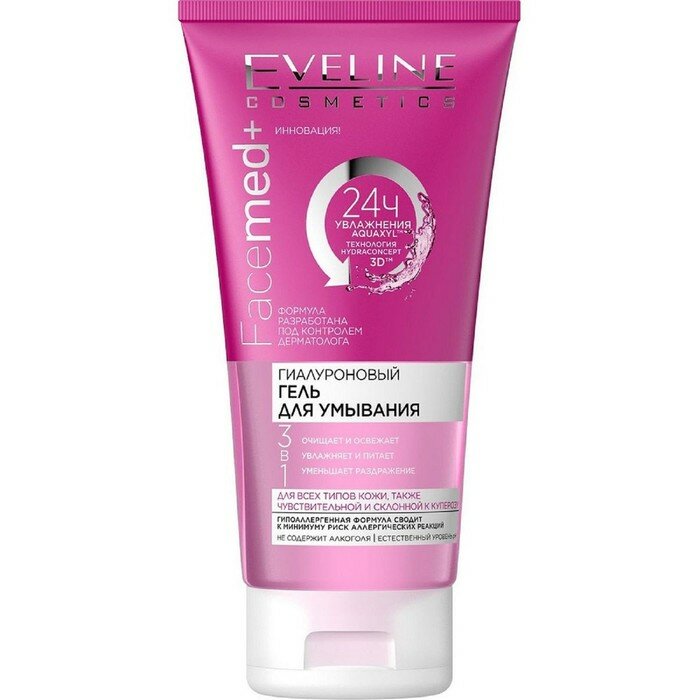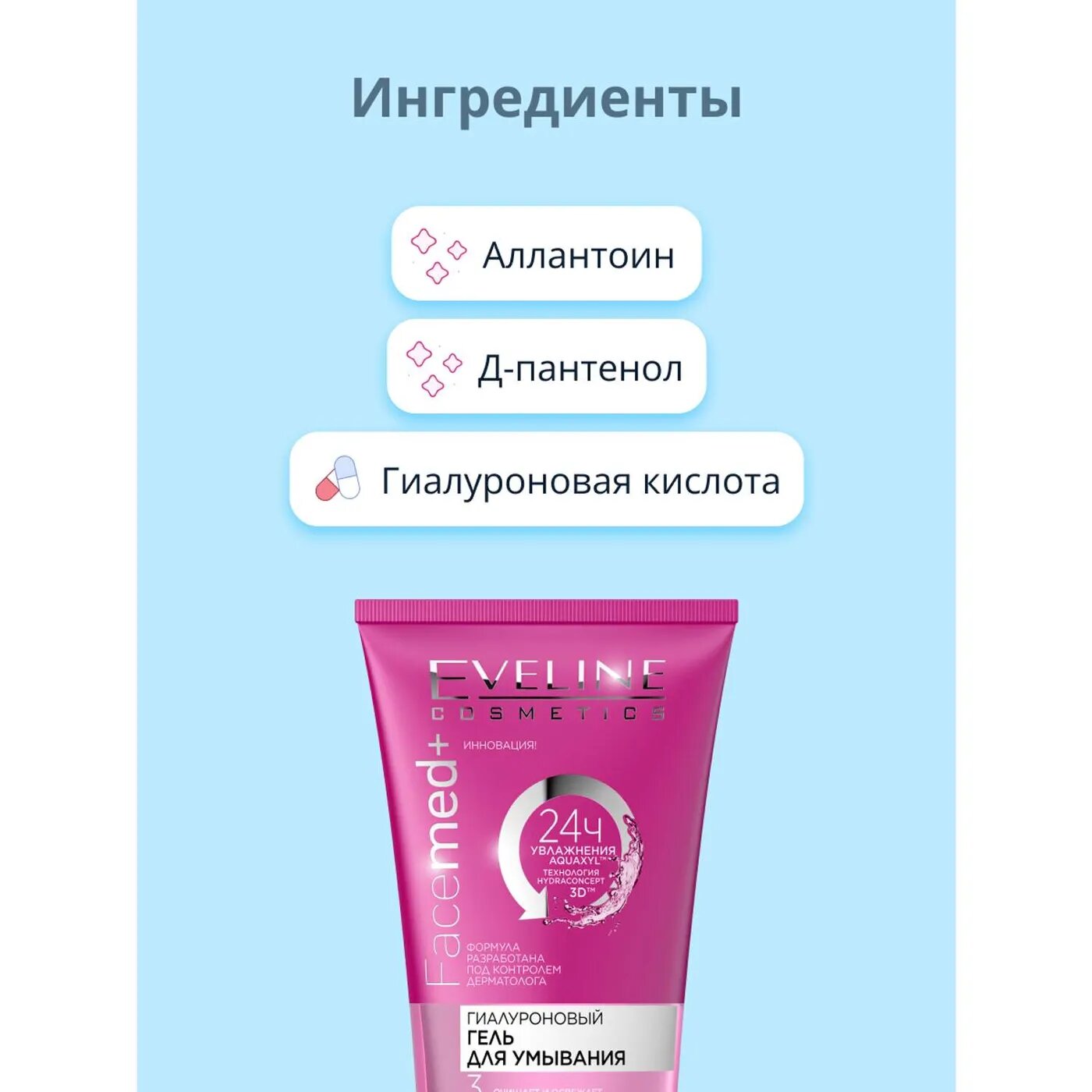 Гель Eveline (Эвелин) гиалуроновый для умывания 3в1 серии facemed+ 150мл (1122727)