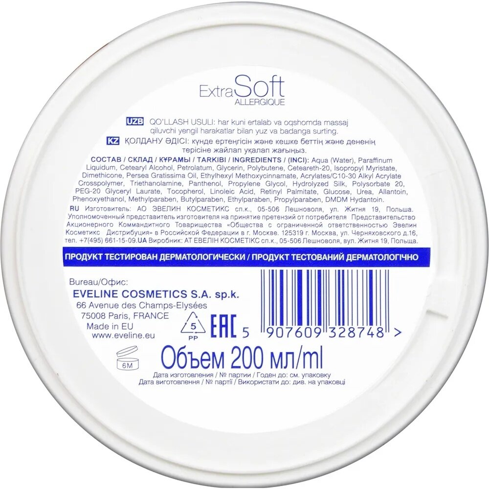 Крем питательный Eveline (Эвелин) для кожи лица и тела для любого типа кожи серии extra soft 200мл (1122727)