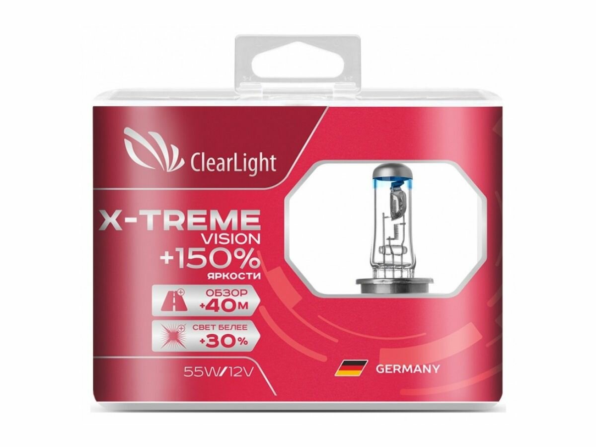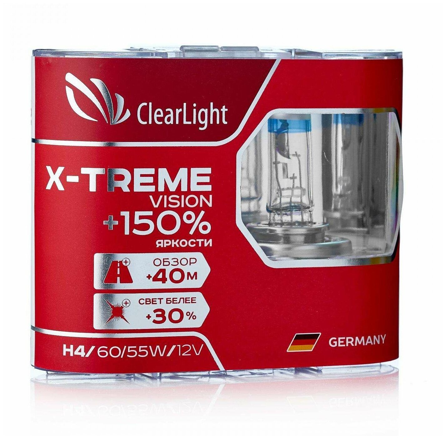 Лампа автомобильная галогенная Clearlight H4 12V-60/55W X-treme Vision + 150%, 2 шт (MLH4XTV150)