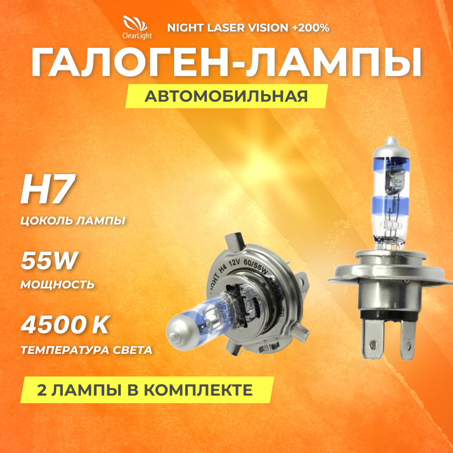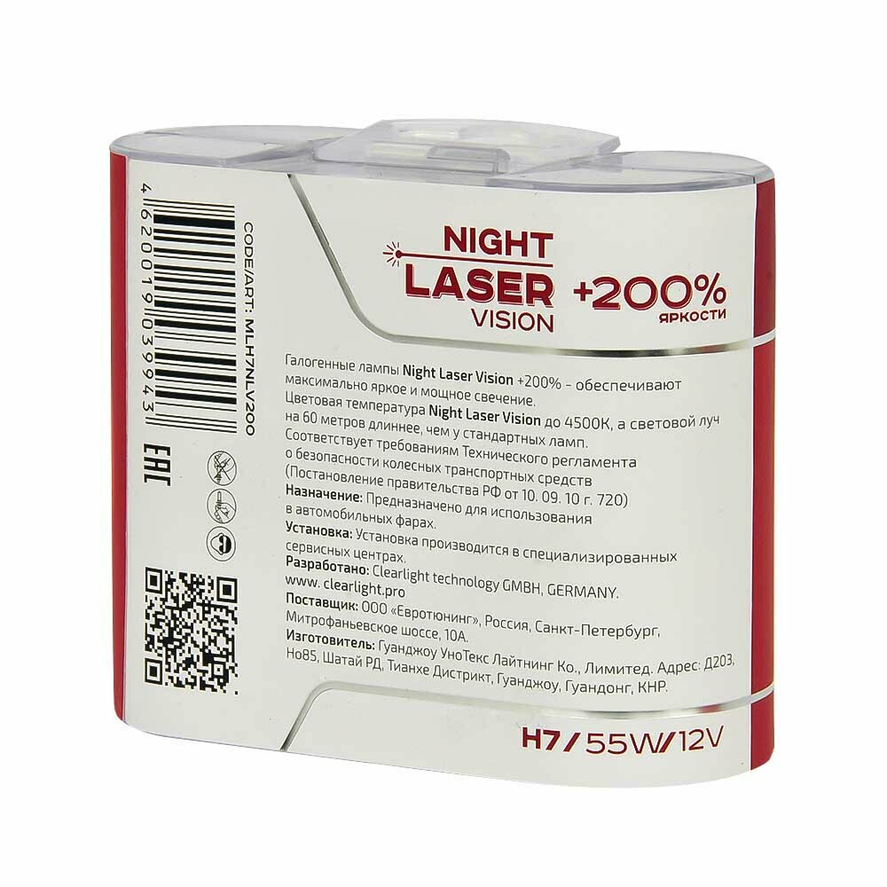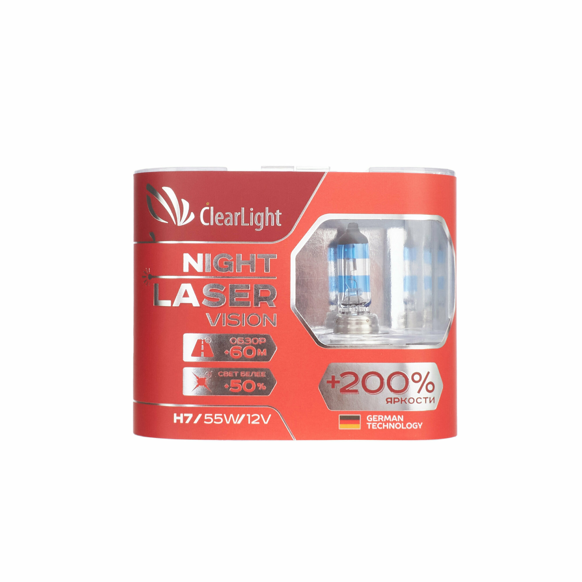 Лампа автомобильная галогенная Clearlight H7 12V-55W Night Laser Vision + 200%, 2 шт (MLH7NLV200)