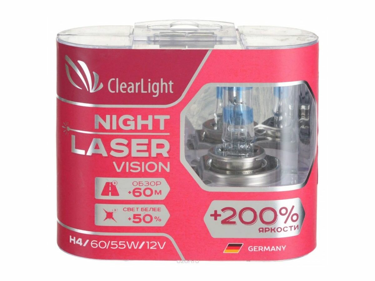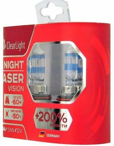 Clearlight Night Laser Vision +200% Light самые яркие лампы из разрешенных для дорог общего пользования. В производстве ламп использованы лазерные технологии. Лучший срок эксплуатации в своем классе. Увеличенный обзор до 60 м. Свет белее на 50%.