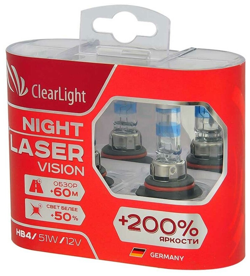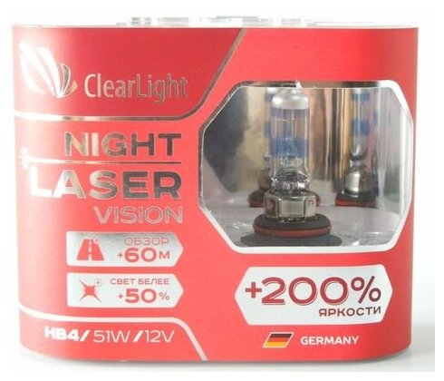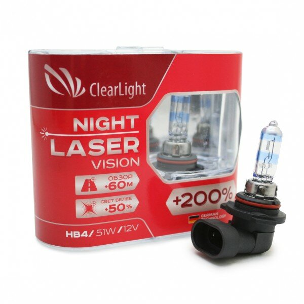 Лампа автомобильная галогенная Clearlight HB4 12V-51W Night Laser Vision + 200%, 2 шт (ML9006NLV200)