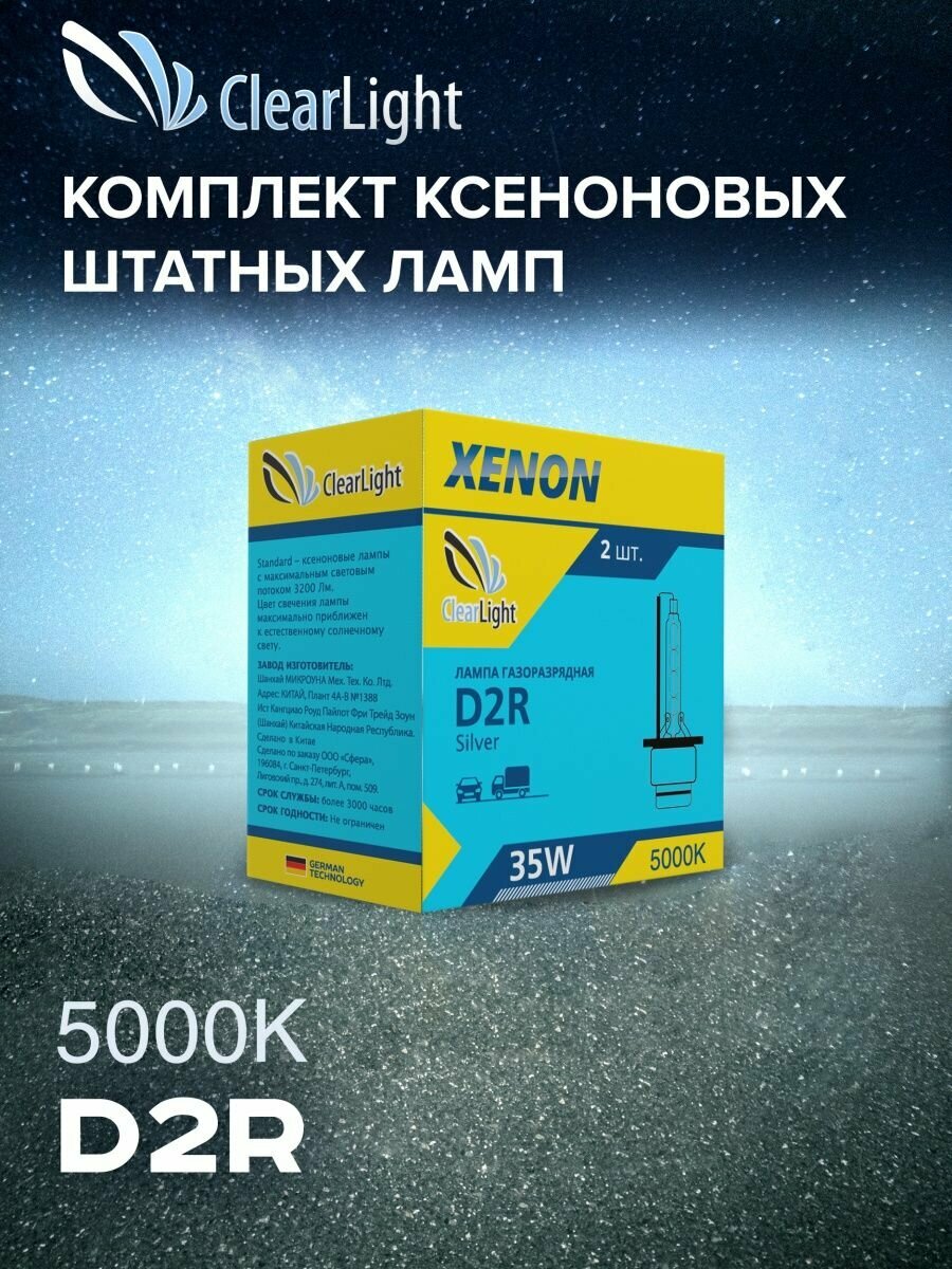 Лампа автомобильная ксеноновая Clearlight D2R 5000K, 2 шт (KCL D2R 150-0LL)