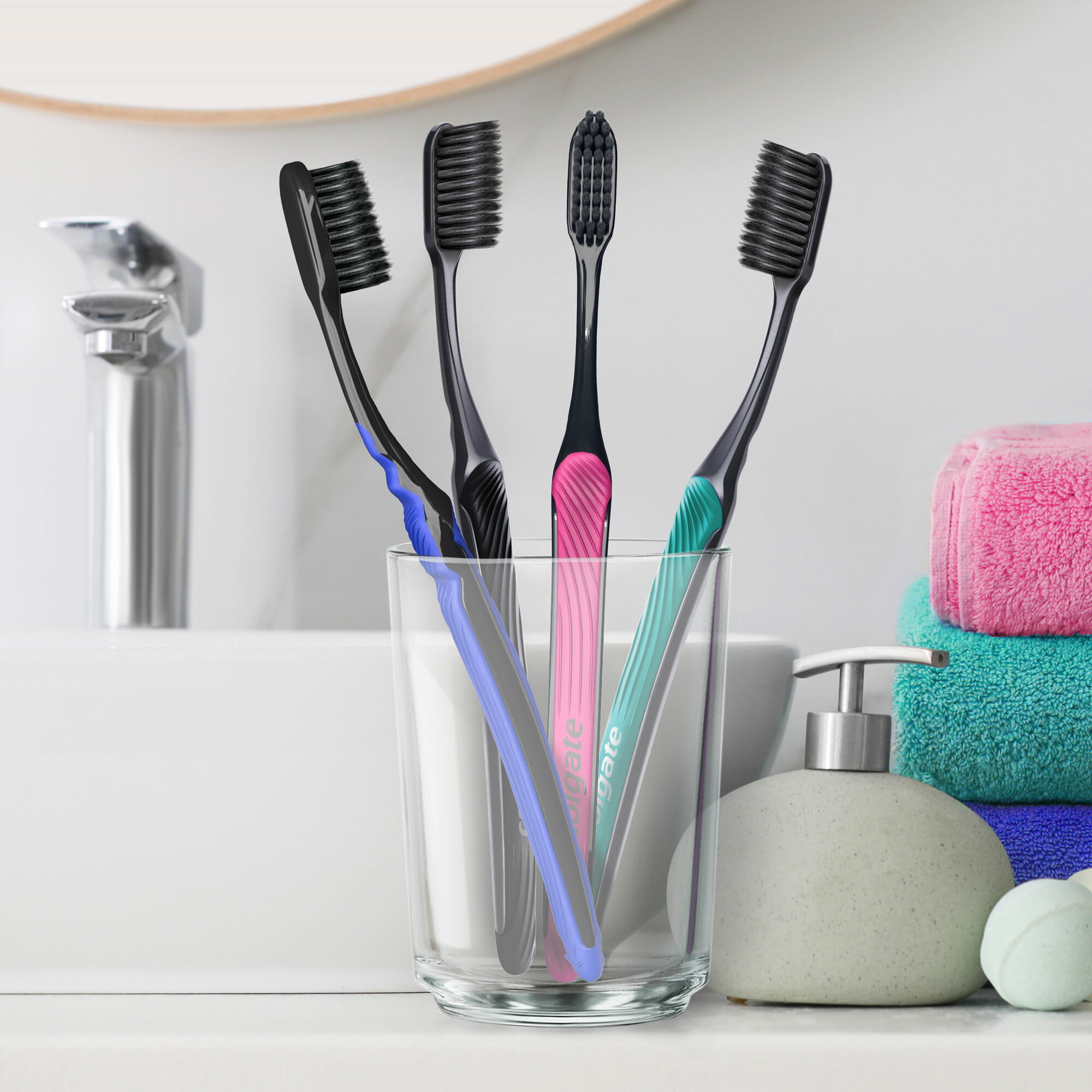 - COLGATE Шелковые Нити с древесным углем черная зубная щетка для здоровья десен, мягкая синяя